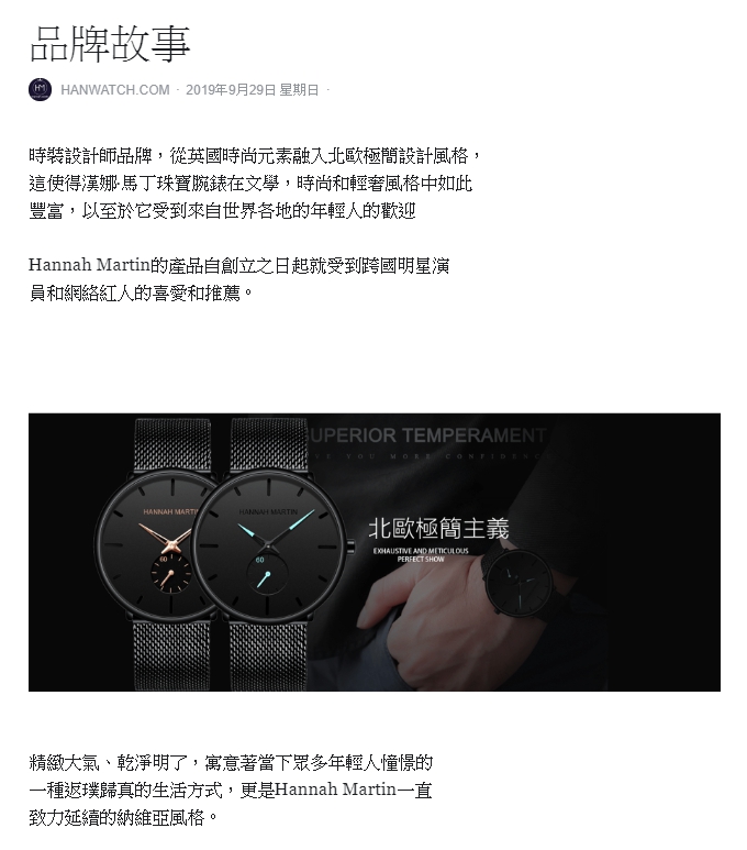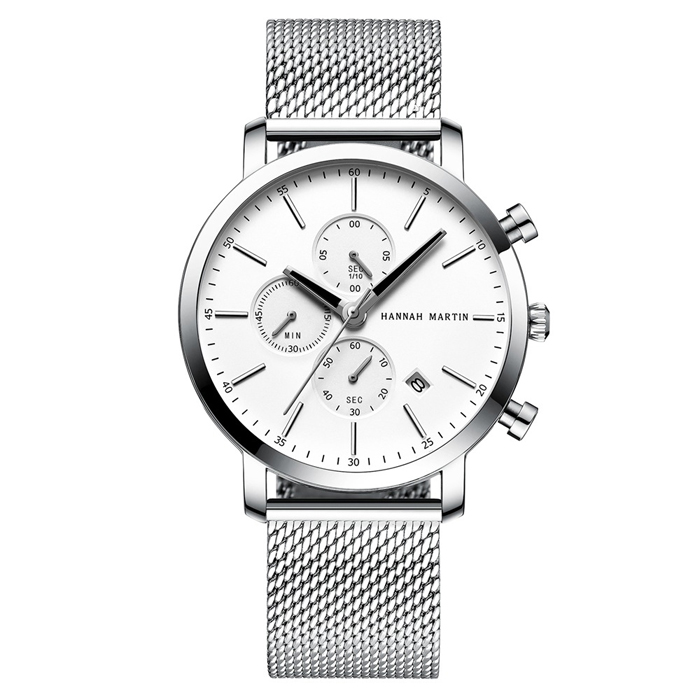 | 商品名稱 | HANNAH MARTIN 紳士三眼計時日曆米蘭帶腕錶-HM-109B-WYY |