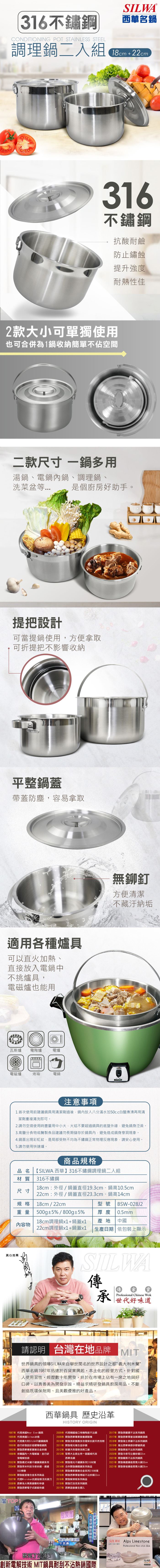 | 商品名稱 | 【SILWA 西華】316不鏽鋼調理鍋二入組(18cm+22cm) |
