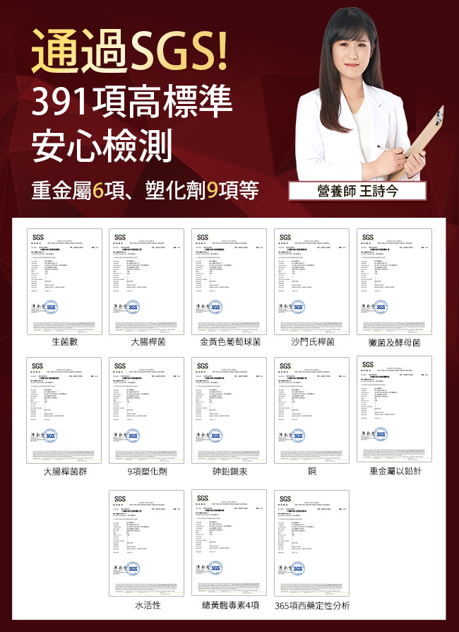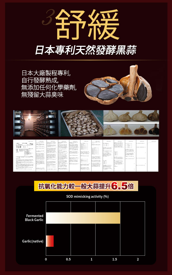 | 內容物 (完整成份/食品添加物) | 魚肉萃取(糊精、魚肉萃取)、綠茶萃取、微結晶狀α-纖維素、麥芽糖醇、菊花萃取(菊花萃取物、麥芽糊精)、發酵黑蒜粉、洋菇萃取(糊精洋菇萃取、DL-蘋果酸(羥基丁二酸))硬脂酸鎂、二氧化矽、維生素B12(麥芽糊精、檸檬酸鈉、檸檬酸、氰鈷胺明)、維生素B2(核黃素)、維生素B6(鹽酸吡哆辛)、維生素B1(鹽酸硫胺明) |