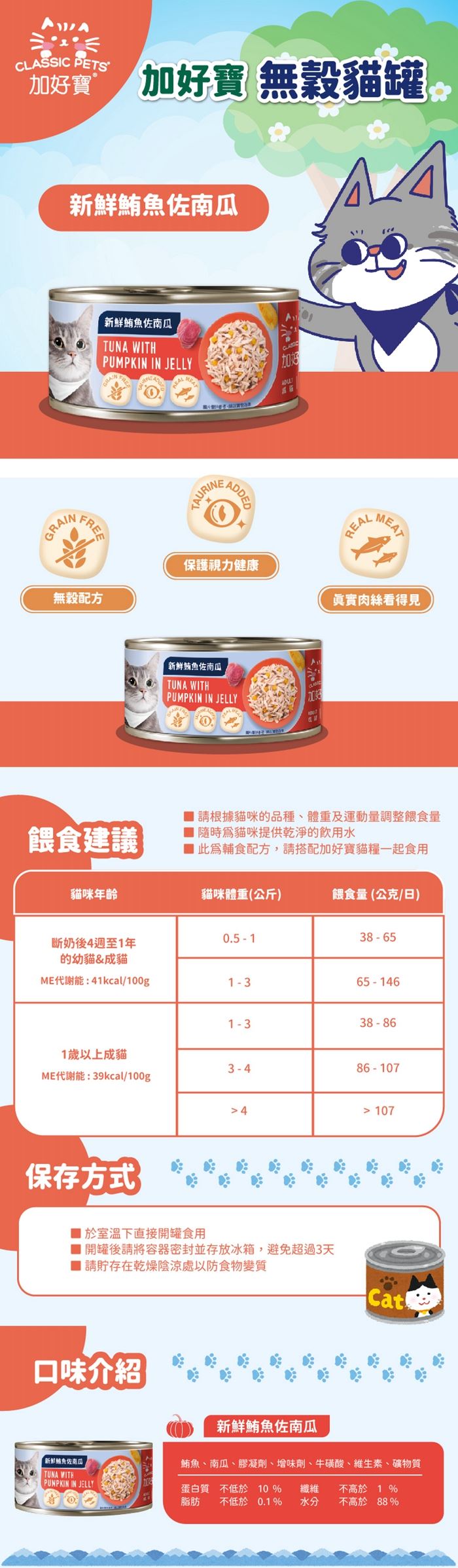| 商品名稱 | 加好寶無穀貓罐 - 新鮮鮪魚佐南瓜 80G *24入 |