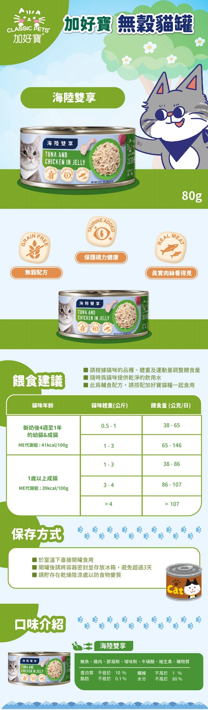 | 商品名稱 | 加好寶無穀貓罐 - 海陸雙享 80G *24入 |
