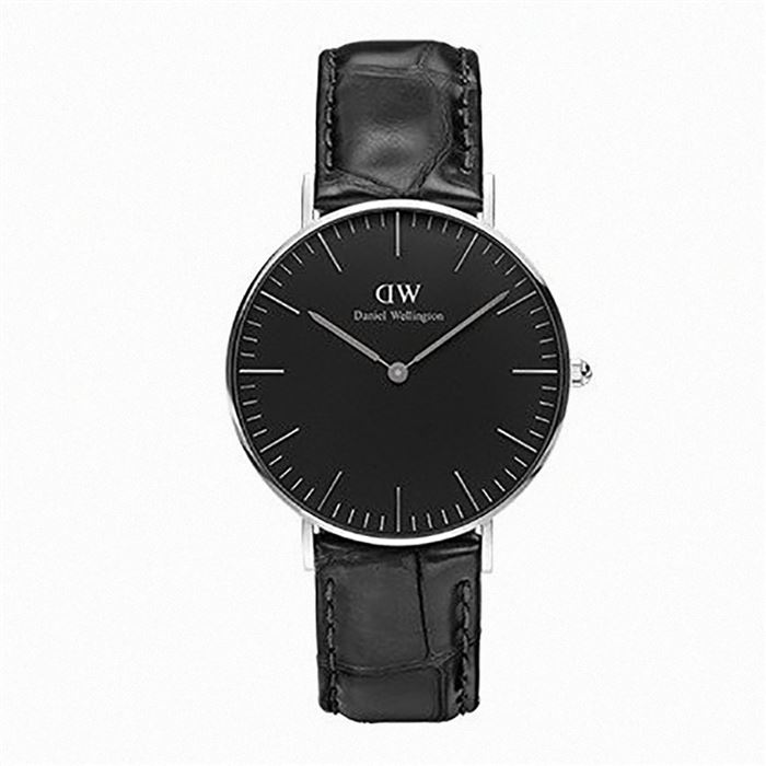 內容物:Daniel Wellington黑色壓紋皮革腕錶-DW00100147 銀框/36mm