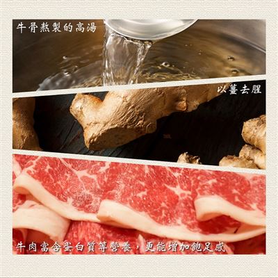 不同口感的斜腹肉與牛肋條搭配清甜牛骨高湯