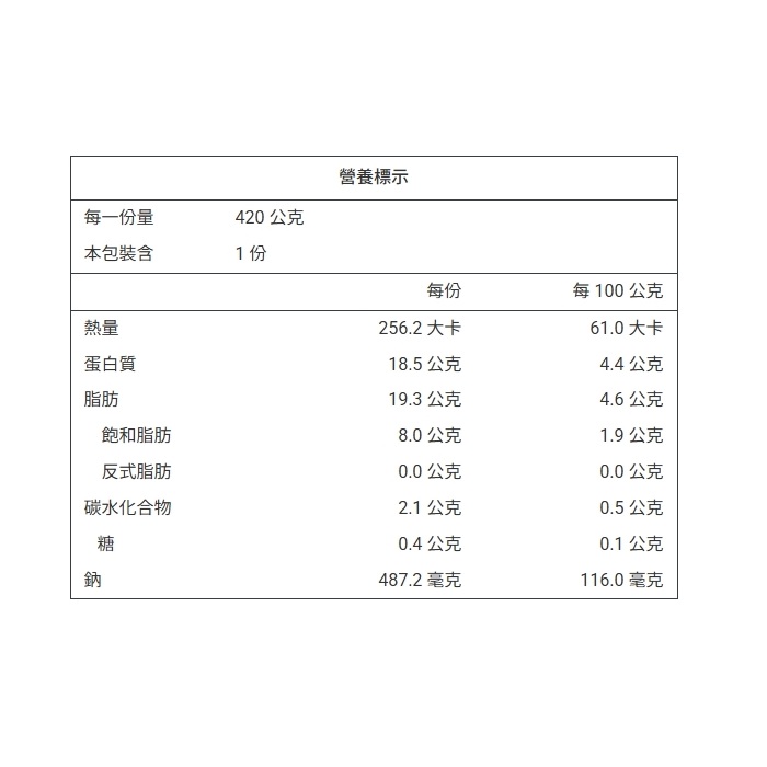 | 包裝內容/商品規格 | 420g(固形物80g)/包 |