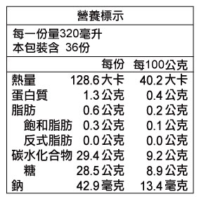 | 過敏原資訊 | 本產品與其他含有芹菜類、芒果、奇異果、堅果、大豆製品共用同一產線生產,食物過敏者請留意。 |