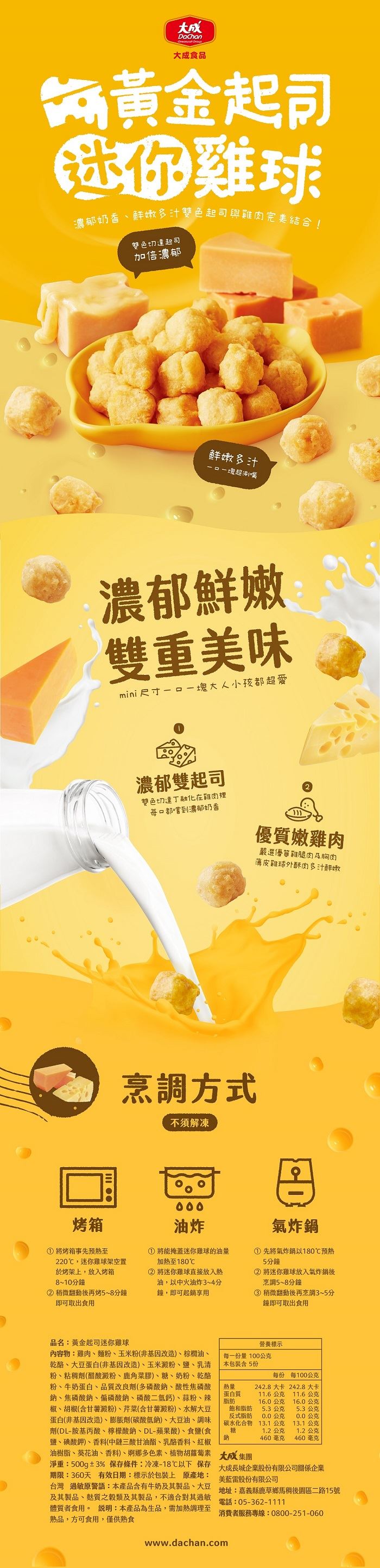 | 商品名稱 | 大成黃金起司迷你雞球 500g |