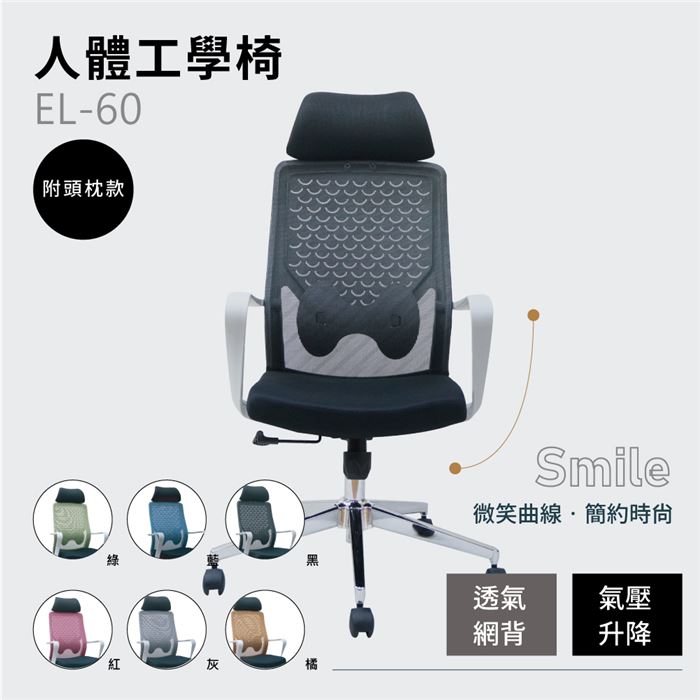 【內容物】 EL-60人體工學辦公椅-附頭枕