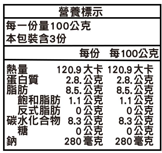 | 過敏原資訊 | ※本產品含有芝麻、蛋及其製 品,不適合對其過敏體質者食用。 |