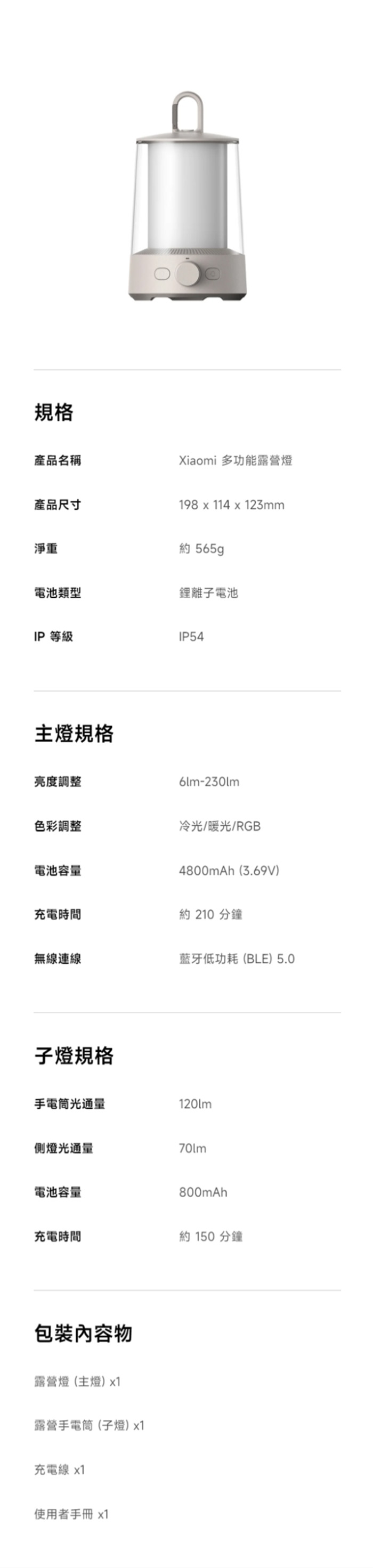 | 【商品名稱或型號】 | 【小米】Xiaomi 多功能露營燈 |