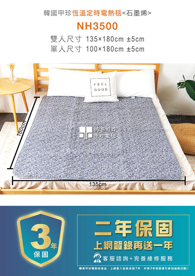 | 商品名稱 | 【韓國甲珍】石墨烯恆溫定時電熱毯(雙人) NH3500 |