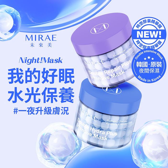 | 商品名稱/包裝內容規格 | MIRAE 未來美 逆時空膠囊精華膜80ml x 2瓶 (3種組合,擇一出貨) ➀補水x 2瓶 ➁修護x 2瓶 ➂補水x 1瓶+修護x 1瓶 |