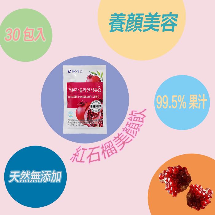 | 商品名稱 | 韓國 BOTO 膠原蛋白紅石榴汁 30包一組 (70ml*30) |