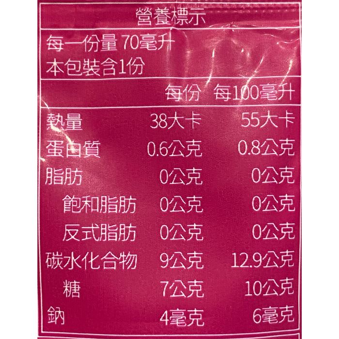 | 營養標示 | 如賣場圖片所示,此營養標示數據 依台灣法規為基礎。 |