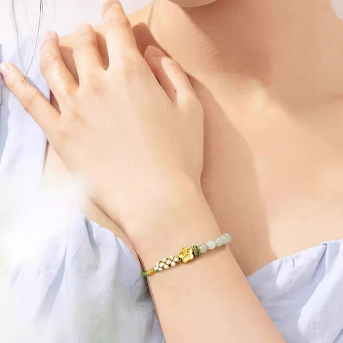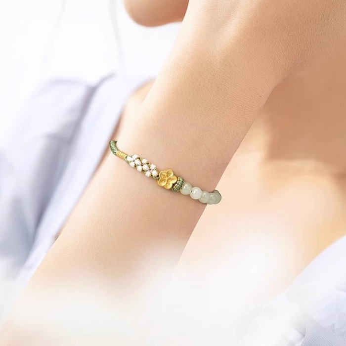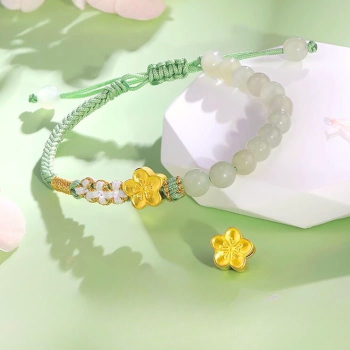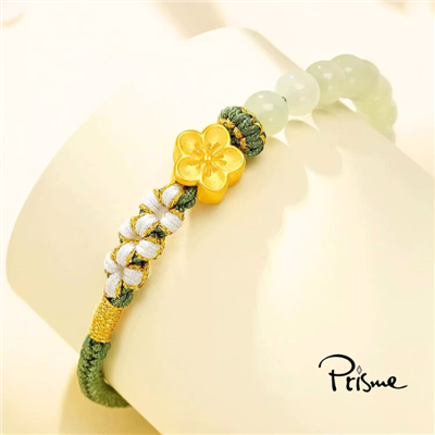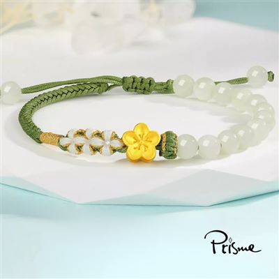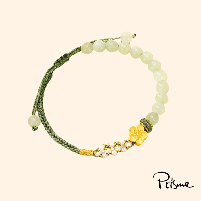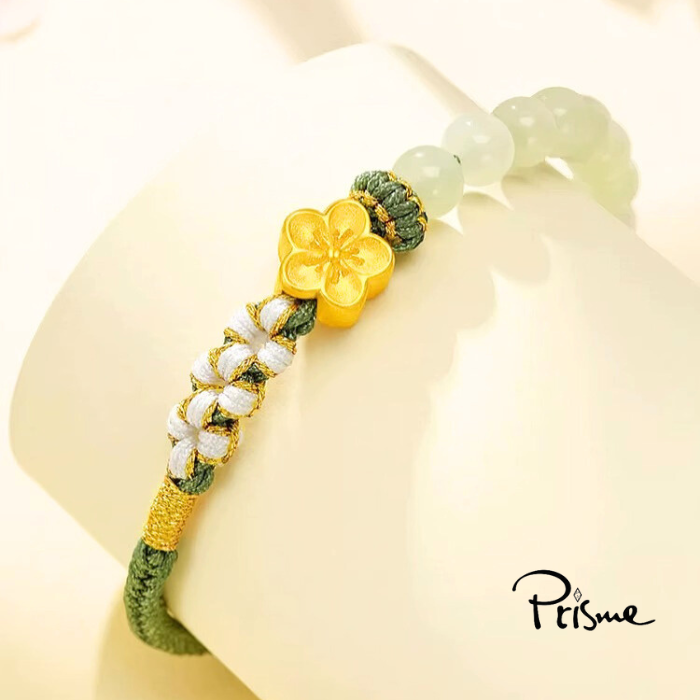 | 商品名稱 | Prisme Gold Peach Blossom 翠綠編織桃花運綠珠黃金手環 |