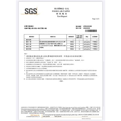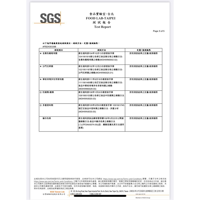 | 產品責任險 | 本公司已投保產品贵任險2000萬元,請安心食用。 |