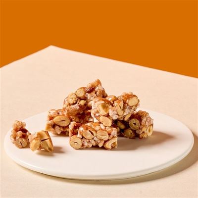 口感酥脆的甜鹹口味,採用特選花生低溫烘焙,以經典比例搭配米香,製作口味清爽的米香花生糖,保留花生香氣與口感,減少油膩、降低負擔,凸顯花生的最佳風味。
