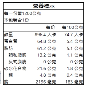 | 包裝內容/商品規格 | 1200g(固形物120g)/包*20包 |