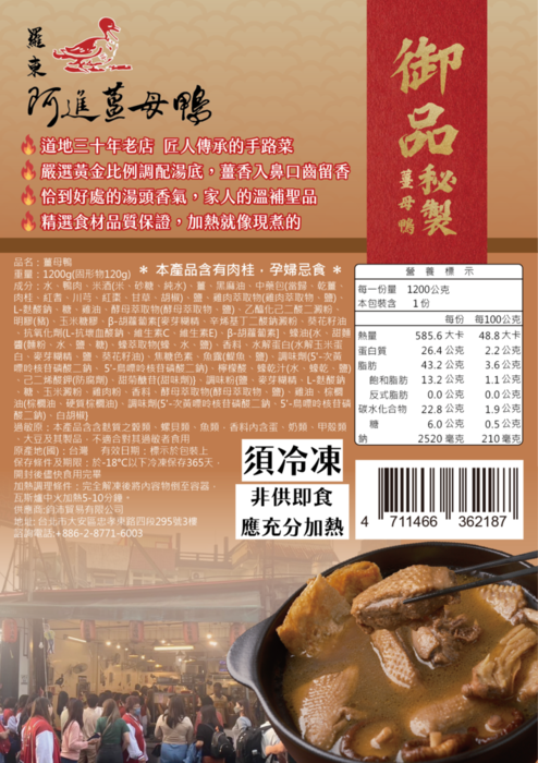 | 商品名稱 | 羅東阿進薑母鴨1200g*20包 |