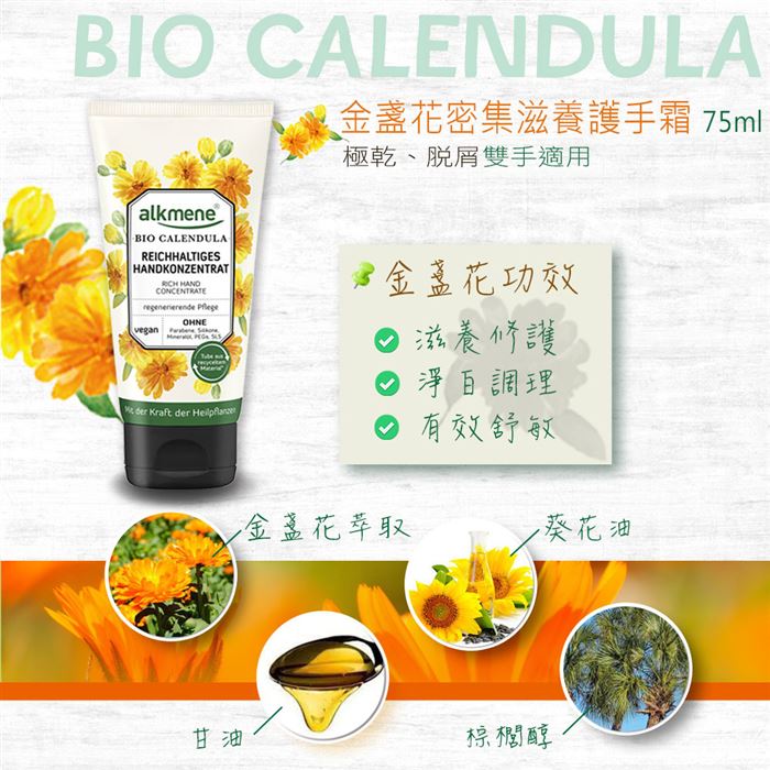 【德國alkmene 歐珂蔓】金盞花密集滋養護手霜75ml [買1送1]