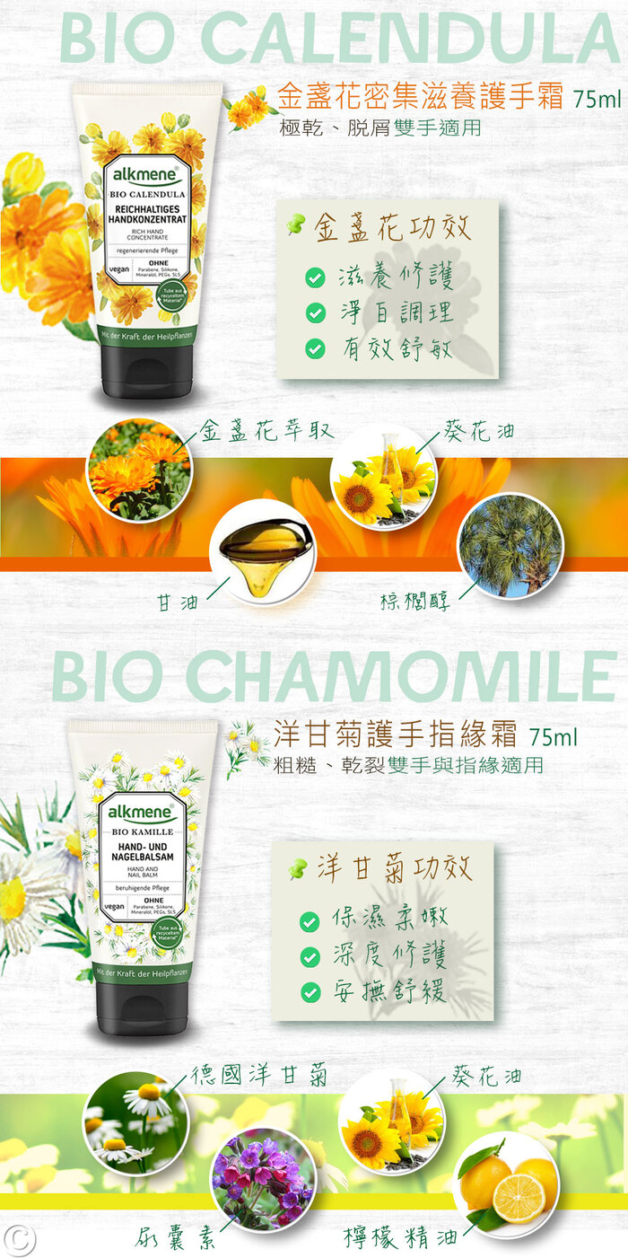 | 商品名稱/包裝內容規格 | alkmene 歐珂蔓 金盞花密集滋養護手霜 75ml x 2件 |