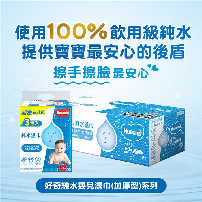 | 商品名稱 | 【HUGGIES 好奇】純水嬰兒濕巾 加厚型 80抽x10包/箱 |