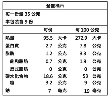 | 過敏原資訊 | 本產品含牛奶、含麩質之穀物及大豆製品。 |