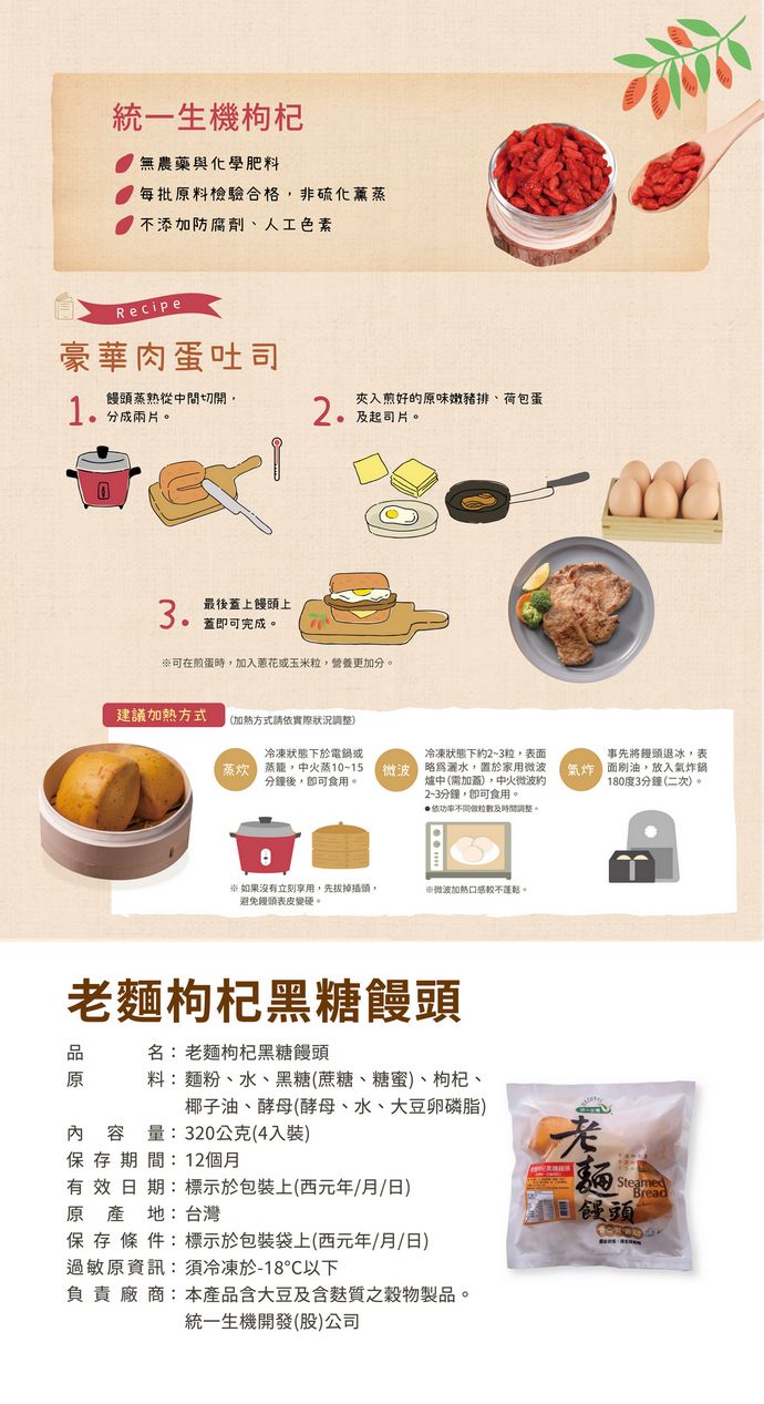 | 商品名稱 | 老麵枸杞黑糖饅頭 |