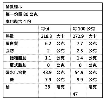 | 過敏原資訊 | 本產品含大豆及含麩質之穀物製品 |