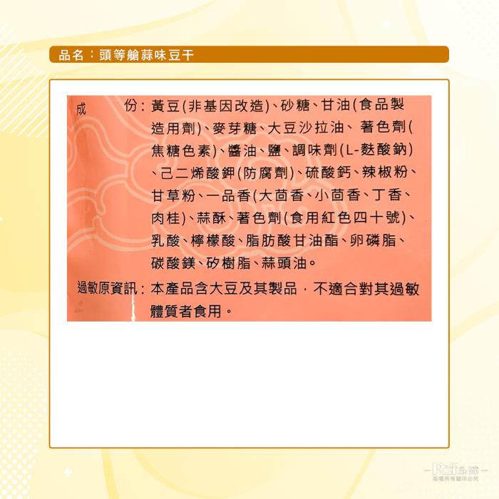 | 商品名稱 | 【頭等艙】蒜味豆乾(五辛素)(300g/包)_12包組 |