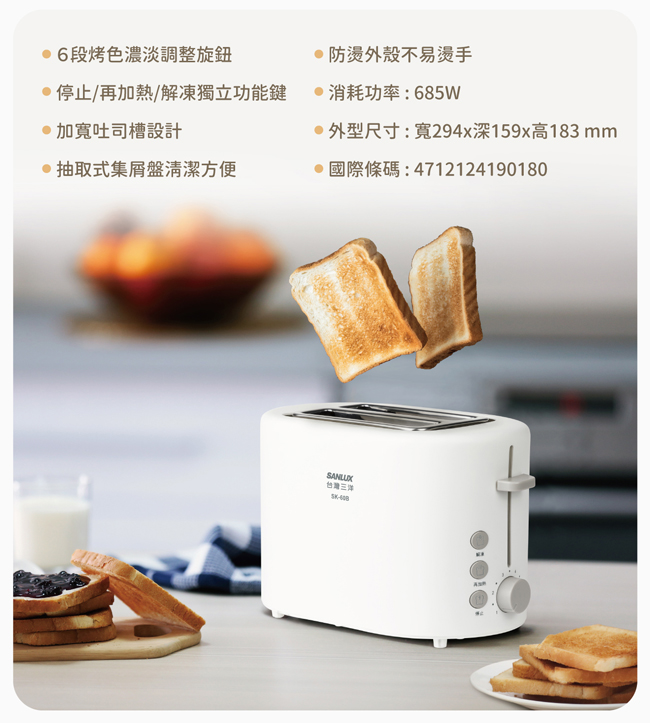 | 商品名稱 | 【SANLUX台灣三洋】烤麵包機 SK-60B |