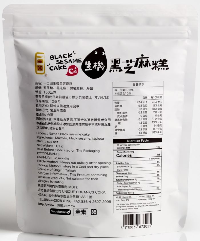 | 商品名稱 | 一口田 生機黑芝麻糕 |