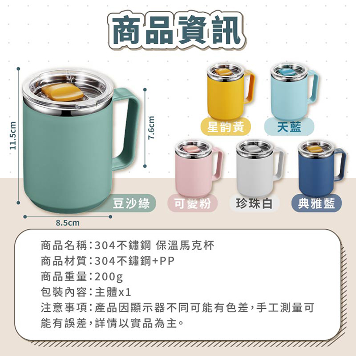 | 【商品名稱】 | 【買一送一】304不鏽鋼保溫馬克杯(6色可選) |