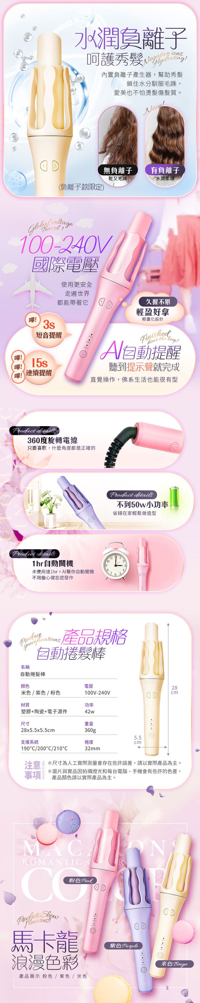 | 內容物 | 捲髮棒x1/梳子x1/髮夾x2/說明書x1/保固卡x1 |