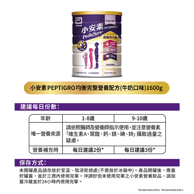 | 商品名稱 | 亞培 小安素PEPTIGRO均衡完整營養配方-牛奶口味(1600gx2入) |