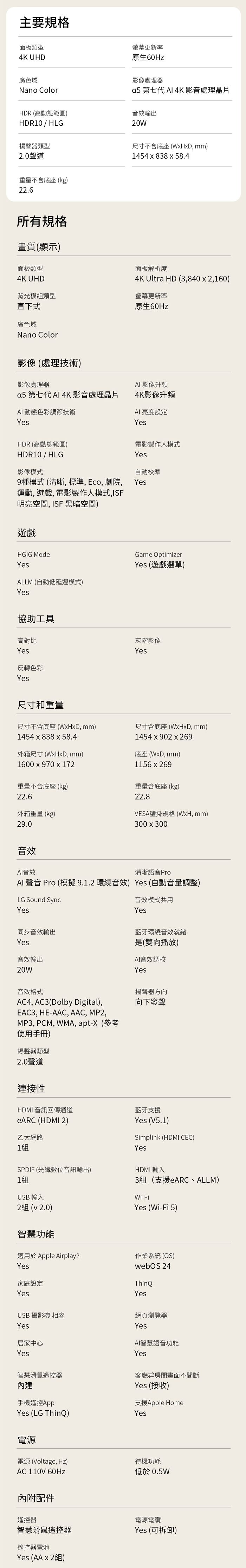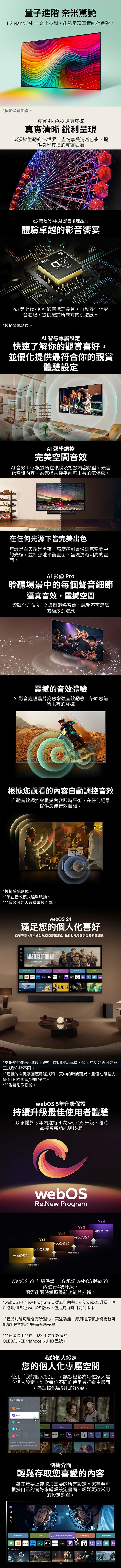 | 商品名稱 | 【LG 樂金】65吋 NanoCell AI 一奈米 4K AI 語音物聯網 81系列 (可壁掛) |