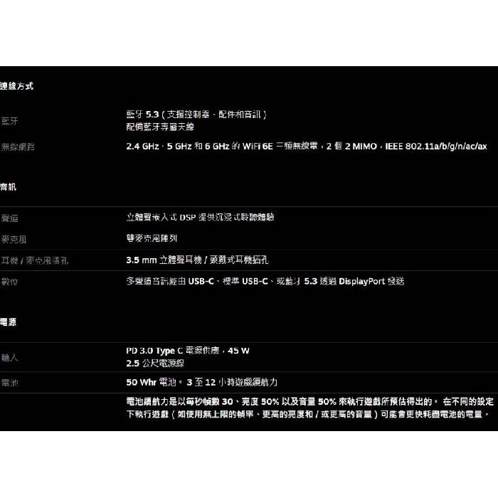 50 Whr 電池。3 至 12 小時遊戲續航力