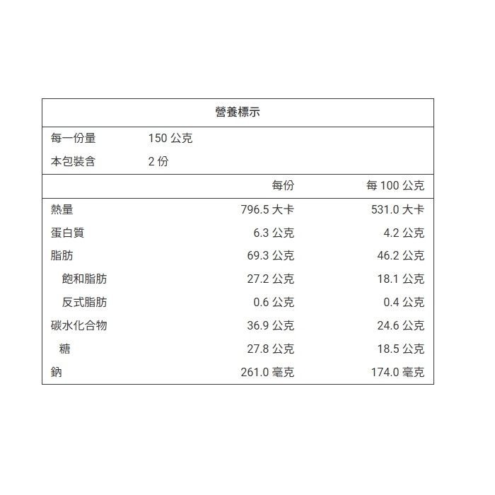| 包裝內容/商品規格 | 150g*2入/盒 |