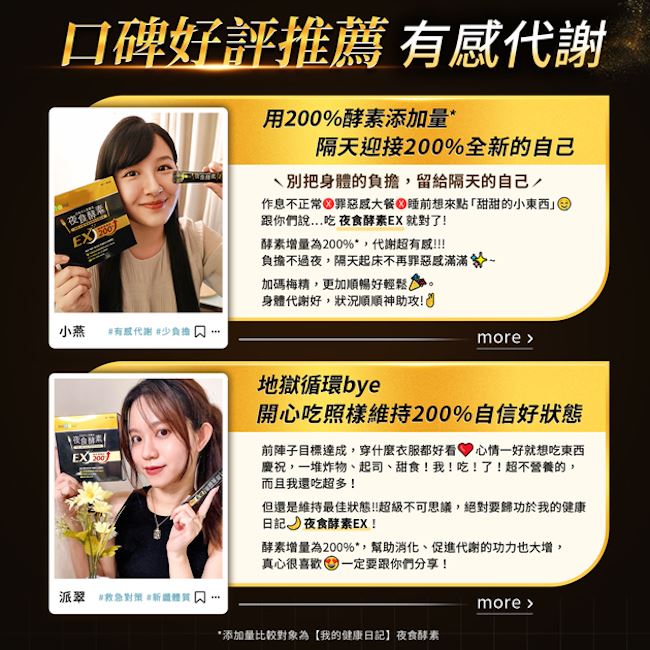 宵夜、大餐、飲食管理的代謝應援200%酵素添加量