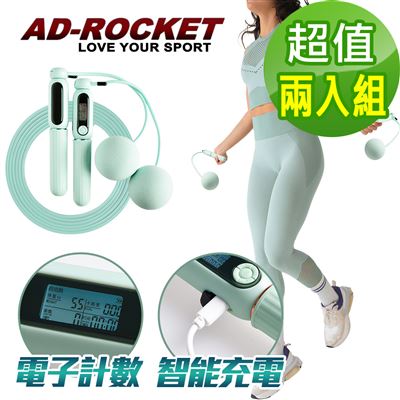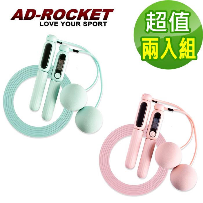 【商品名稱】【AD-ROCKET】充電智能磁控計數跳繩 無繩+有繩超值組(粉色+粉綠)