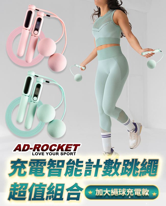 | 【商品名稱或型號】 | 【AD-ROCKET】充電智能磁控計數跳繩 無繩+有繩超值組(粉色+粉綠) |