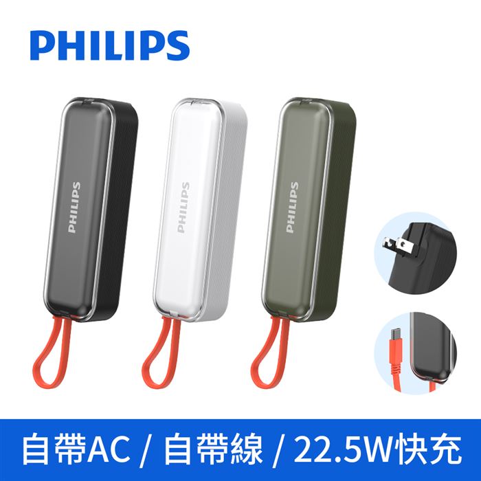 | 【商品名稱或型號】 | 【PHILIPS】FunCube BAR 22.5W快充旅充式自帶線行動電源(DLP5201C) 4900mAh |