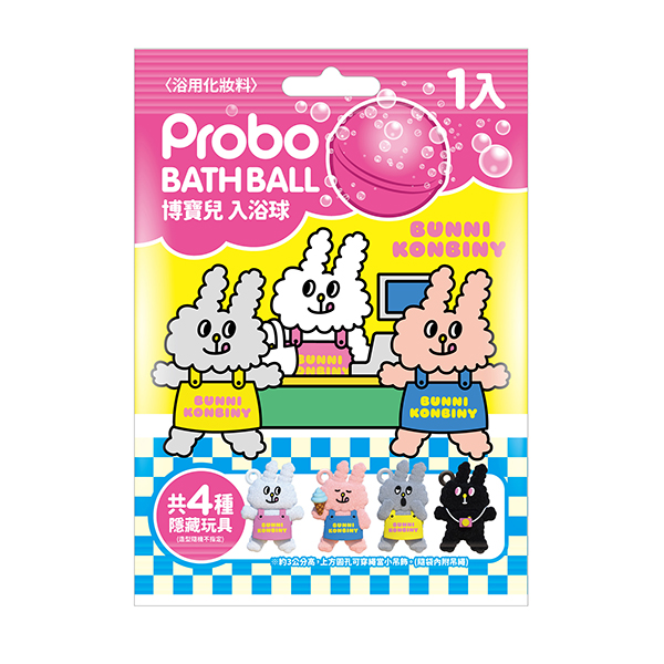 - 如果浴缸裡還能出現驚喜,那就真的太棒了!每個博寶兒入浴球內含1個兔子便利店小玩具,可以穿繩當成吊飾掛於包袋及各種不同地方,全部4種造型,隨機出貨,趕快來收集唷!