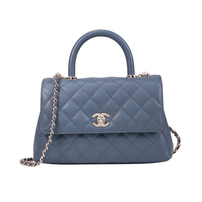 | 商品名稱 | CHANEL Coco Handle菱格紋小牛皮手提兩用包(金釦-迷霧藍) | |