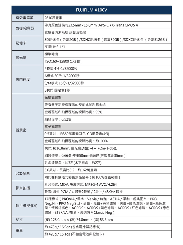 | 【商品名稱或型號】 | 【FUJIFILM 富士】X100VI數位相機-銀色*(平行輸入) |