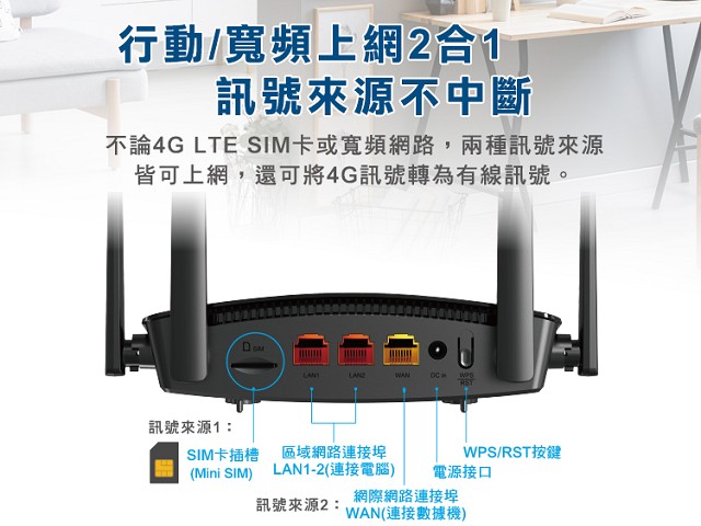 ✅行動寬頻上網 2合1,兩種訊號來源皆可上網。