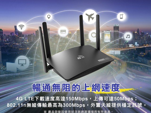 ✅4G下載速度高達150Mbps,上傳達 50Mbps 。