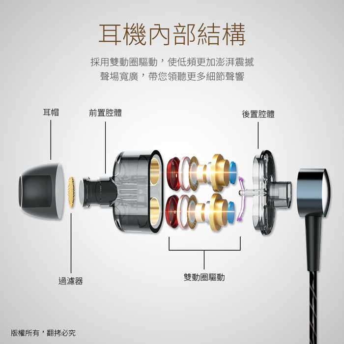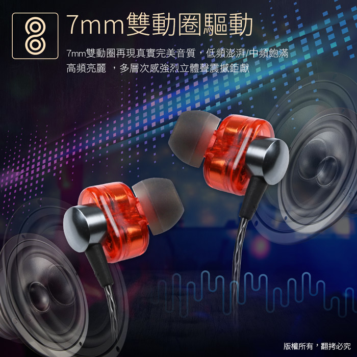 『雙動圈驅動入耳式線控耳機麥克風』,搭載7mm雙動圈