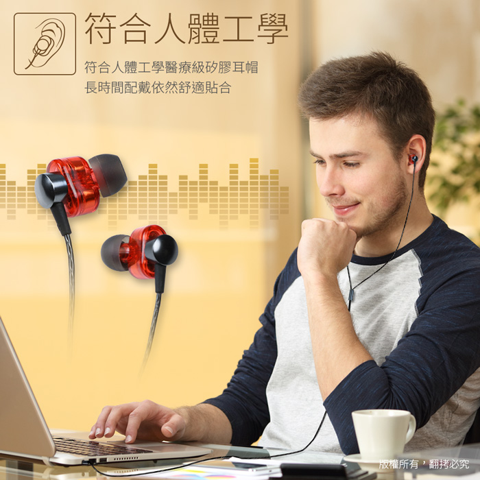 多層次感強烈立體聲,使用醫療級矽膠耳帽,長時間配戴