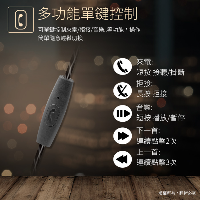 線控,可單鍵控制來電/拒接/音樂..等功能,讓您輕鬆