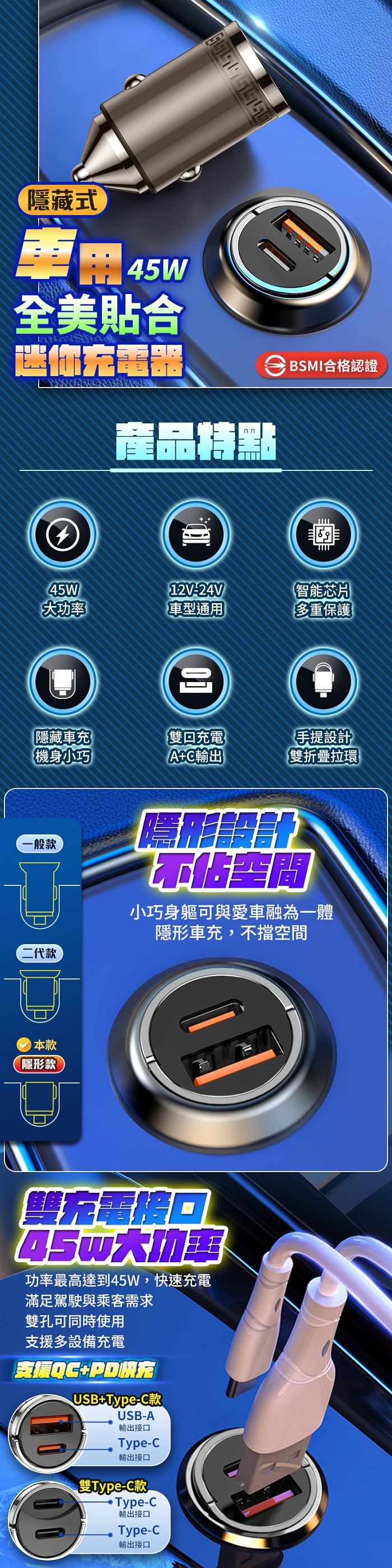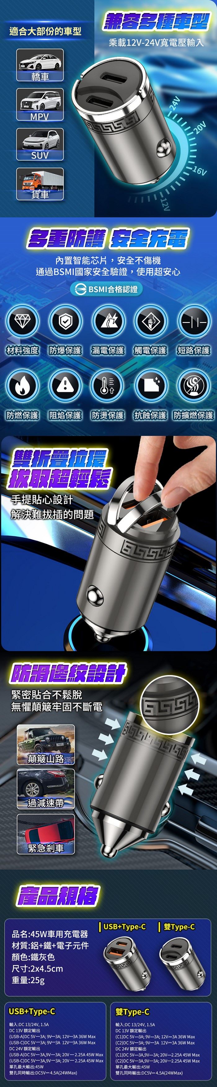 | 【注意事項或使用方法】 | 1.請先確認產品符合您的愛車 2.僅有Type-C孔支援快充 |
